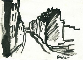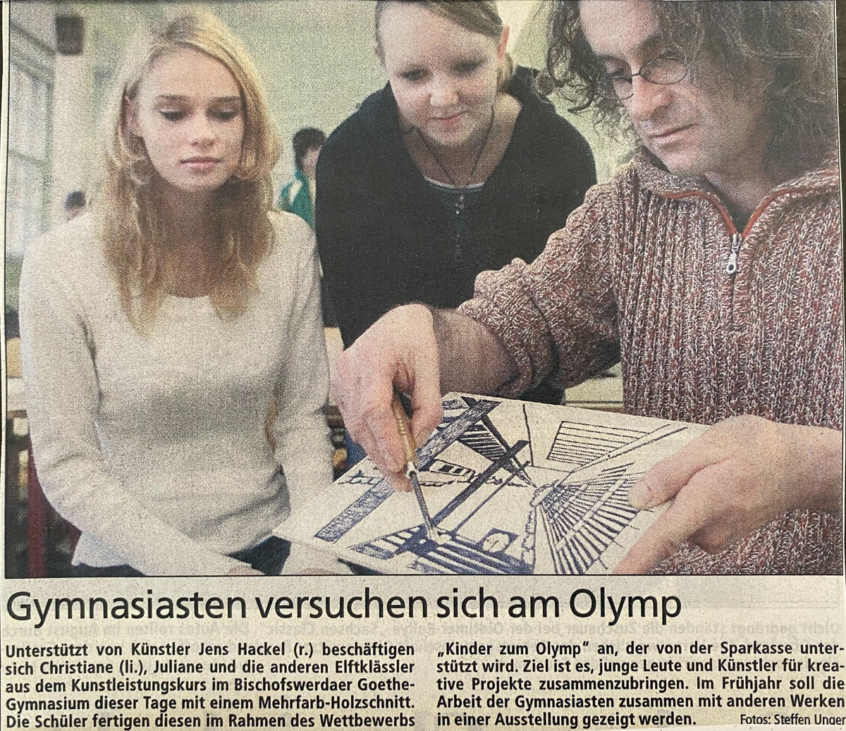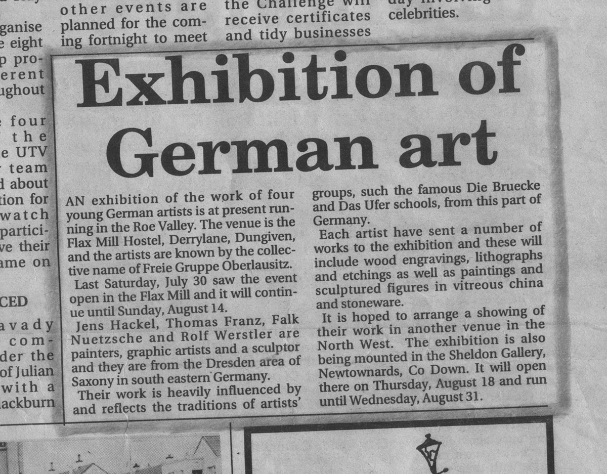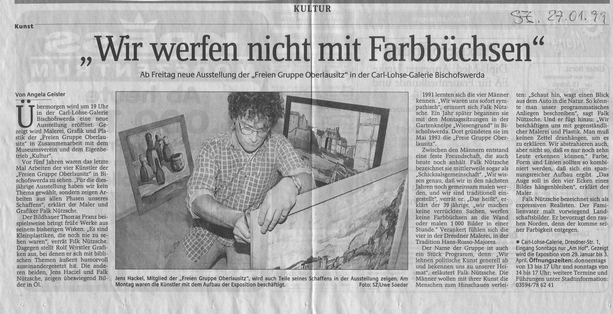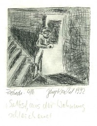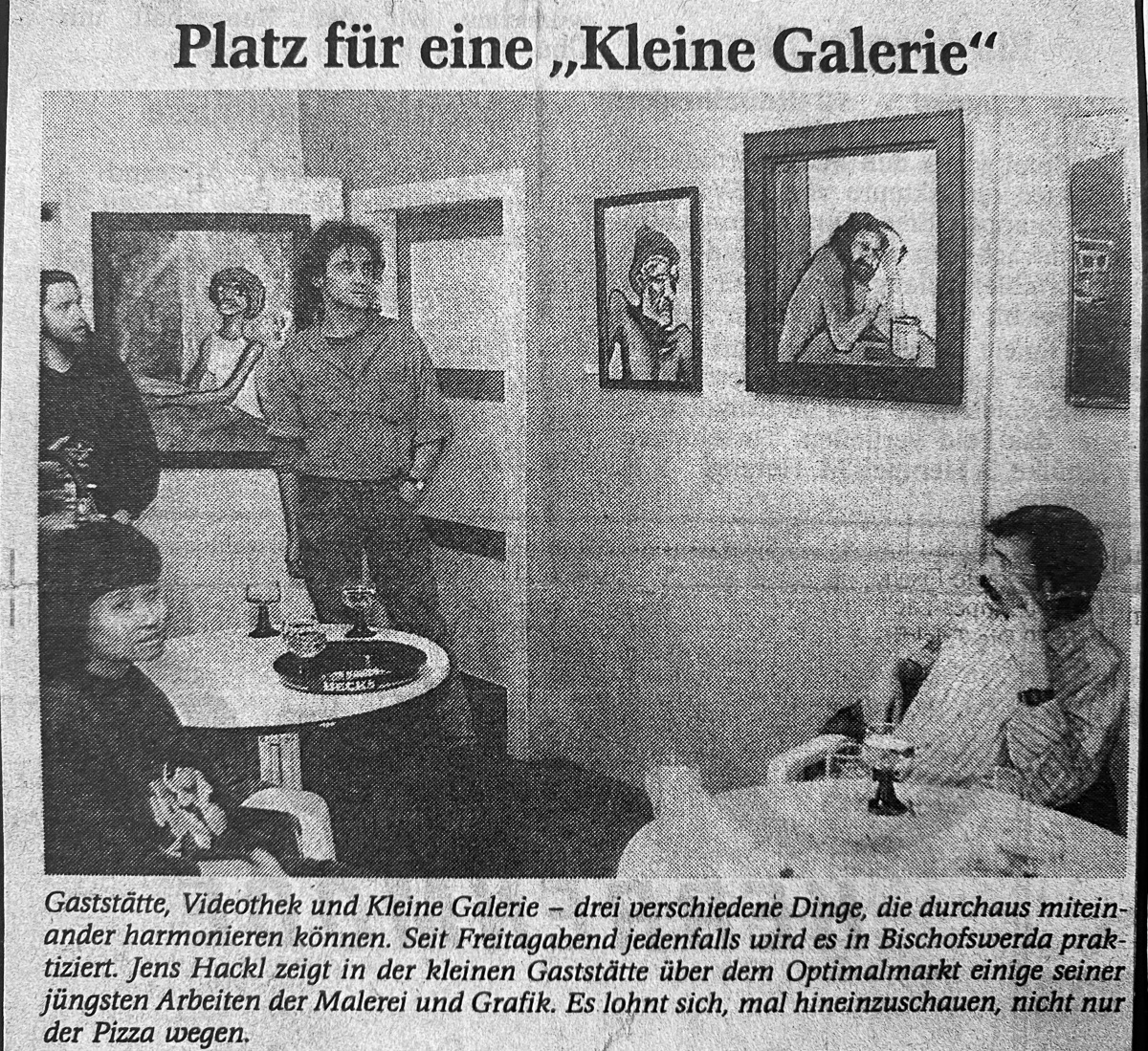 Indem er an den benachbarten stehengebliebenen Brandmauern noch die Baugliederung und Details der einzelnen, verlorenen Wohneinheiten sichtbar beließ, verlieh er unbewusst seinem Ärger Ausdruck, dass die historisch gewachsenen kleinstädtischen Strukturen verfielen und zerstört wurden, ohne dass eine adäquate wertgebende moderne Neubebauung oder Umnutzung absehbar gewesen wären. Hackel kannte Bischofswerda so gut wie keine andere Stadt, und er wusste sie mit anderen Stätten, mit nordirischen Cottages, venezianischen Stadtpalästen am Canale oder dem „Goldenen Prag“ mit der Karlsbrücke und dem Goldmachergässchen zu vergleichen. Am Ufer der Moldau fand er auch das „Tanzende Haus“, ein modernes Architekturensemble, das an eine Tänzerin im gläsernen Faltenrock erinnert, die sich an einen Herrn mit Hut schmiegt. Dieser dekonstruktivistische Bau, der im Volksmund auch „Ginger und Fred“ genannt wird, regte ihn zu mehrfacher Gestaltung an. Aber Legendenbildung findet immer wieder und auch in Bischofswerda statt. Hier erfasste Hackel beispielsweise das von unrühmlichen, durch übernächtigte Zecher geschändete „Seechgässl“, dem er in einem hochformatigen Ölbild eine verschwiegen wissende, heitere Würde wiedergab. Im Holzschnitt „Kleine Narrenstadt 2005“ allerdings ließ er sarkastisch einen wohl golden gemeinten Engel am Marktplatz wahre Sturzbäche bitterer Tränen heulen. Suchte er andere Städte auf - Berlin oder Hamburg - waren es wieder die Viertel, die von alltäglichen Lebensrhythmen beherrscht waren, die er als Motiv ins Auge fasste. Da er auf Staffagefiguren verzichtete, lag über all seinen Stadtlandschaften ein Hauch von Verlassenheit und Melancholie. Wandte er sich den Menschen zu, nahm er sie groß ins Bild. Mitunter porträtierte Hackel sich selbst als Clown - mit der Maske, die lachend alle Ängste, Wut und Bedrängnis verbergen konnte. In der Literatur fand er Identifikationsfiguren wie Walter Rheiners Tobias und Hermann Hesses Steppenwolf, die von tiefer seelischer Zerrissenheit bis zur Selbstzerstörung getrieben wurden, wenn es ihnen nicht gelang, lachend die eigene Unvollkommenheit und die der sie umgebenden Gesellschaft zu akzeptieren. Er las diese Werke mehrfach, reflektierte einzelne Textpassagen in seinen zeitweise geführten tagebuchartigen Aufzeichnungen, in die er auch erste bildhafte Ideenskizzen einfließen ließ. Den von Phobien gehetzten „Tobias“ fixierte er kurz darauf in einer Radierung. Den um nüchterne Analyse bemühten Harry Haller, den „Steppenwolf“, in expressiven Farbholzschnitten. Hier tauchte die surreale, schemenhafte Gestalt des Nachtdämonen wieder auf, die er bei einem Entwurf für den Liedermacher Hans-Eckardt Wenzel geschaffen hatte. Dessen Verse, „An mich nachts“, bezog er in Gedanken ganz auf sich selbst, zitierte sie sinngemäß mit seinem eigenen, statt Wenzels Namen, um sich zu Ruhe und Entspannung zu zwingen: „…Mensch, Hackel, schlaf! Wie bist Du auf den Hund gekommen. Ich habe mir für morgen so viel vorgenommen…“. Die Realisierung eines angesponnenen gemeinsamen Projektes, vielleicht einer Cover-Gestaltung, verlief sich im Sande, aber die Figur des Dämons erschien seitdem in Hackels Arbeiten immer wieder: Anfangs erschreckend und selbst wie erschrocken. Bald aber trat sie, im Ölgemälde „Selbst im Januar 2006“ und in verschiedenen Radierungen als behutsamer „Melancholie“-Engel auf, in dessen Armen sich der Künstler geborgen fühlte. In dieser fiktiven Figur hatte Hackel einen Ausdruck für sein Alter Ego gefunden, das schließlich als selbständiges surreales Wesen in seinen Bildern agierte. Wie ein Gewissen positionierte er es mitten in das Bild „Stillleben im Stillleben 2009“, fragend, ob vom Werk des Malers Hackel wohl etwas Bestand haben würde. Seine Malerei, durchdrungen von zeichnerischen Elementen, hatte eine angespannt-elegante Leichtigkeit gewonnen, die sich auch in einer seiner letzten größeren Arbeiten, dem „Kleinstadtjanuar“ zeigte. Er empfahl darin seine Stadt Bischofswerda der Obhut der von ihm geschaffenen Figur, die mittlerweile allen Schrecken verloren hatte, und wie ein Schutzengel über dem tief verschneiten Marktplatz schwebte, um seine Hand nach dem neu errichteten Stahlmonument zu strecken. Künstler, heißt es, seien die Seismographen ihrer Zeit und der Gesellschaft, in der sie lebten.